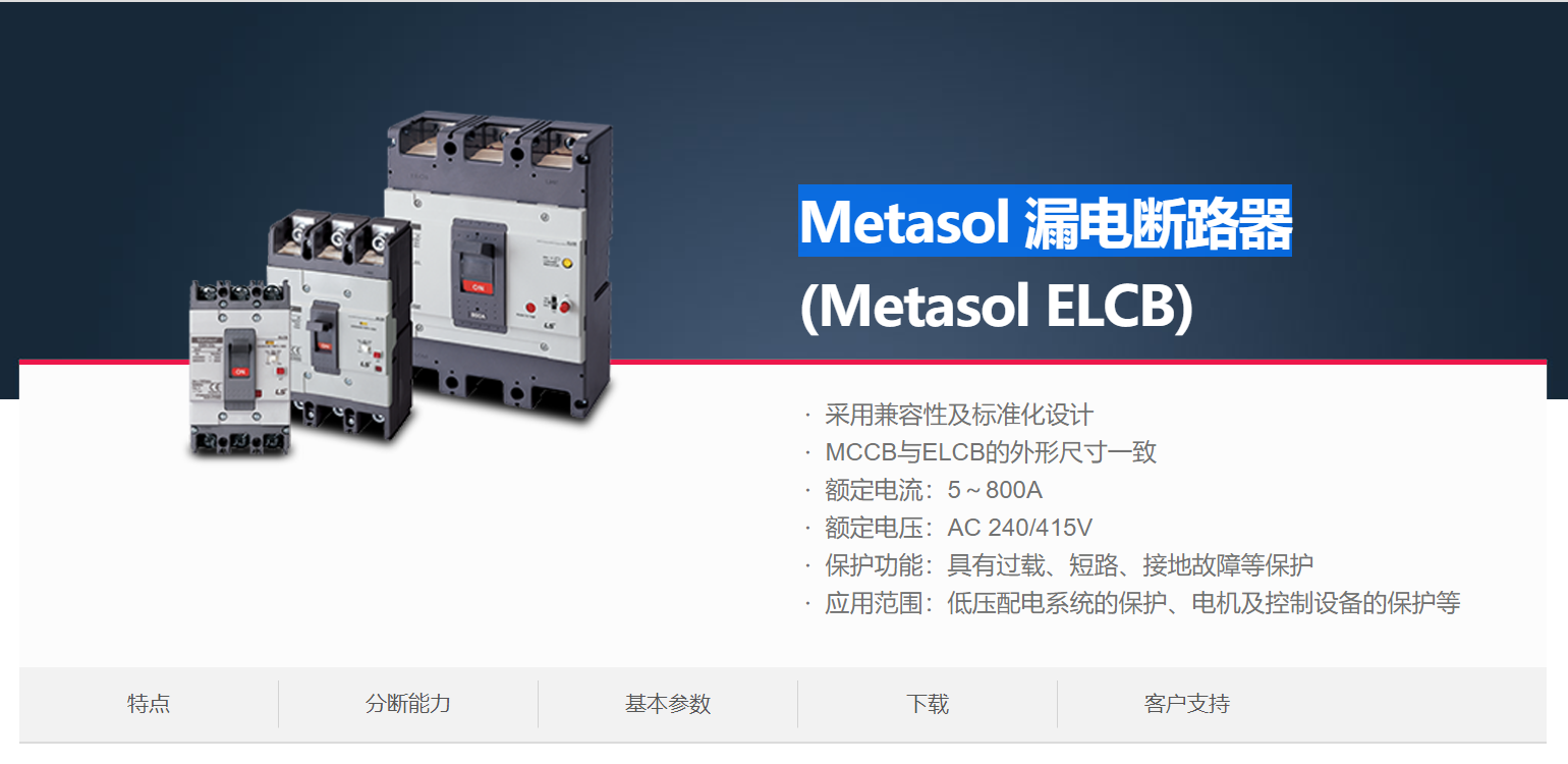 當(dāng)前位置網(wǎng)站首頁 > 產(chǎn)品展示 > LS產(chǎn)電電氣元器件 > 漏電斷路器(ELCB) > Metasol 漏電斷路器 >