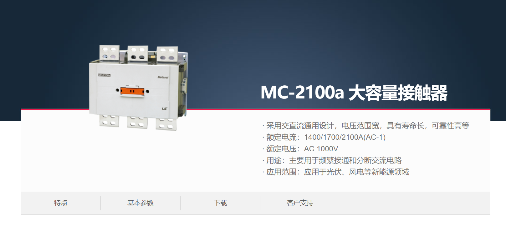 當(dāng)前位置網(wǎng)站首頁(yè) > 產(chǎn)品展示 > LS產(chǎn)電電氣元器件 > 接觸器(MC)&熱過(guò)載繼電器(MS) > MC-2100a 大容量接觸器 >